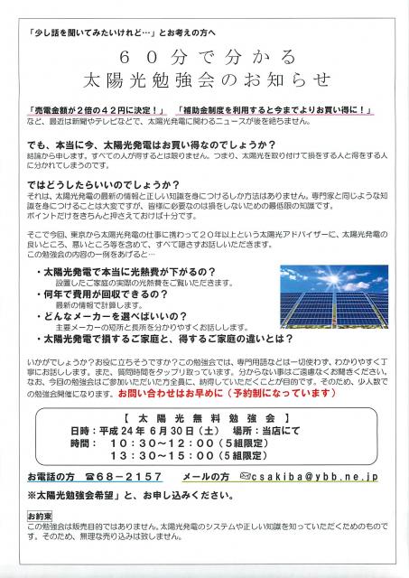 すみません、小さな電気屋で、地域の方を元気にすることが目標なので・・・。