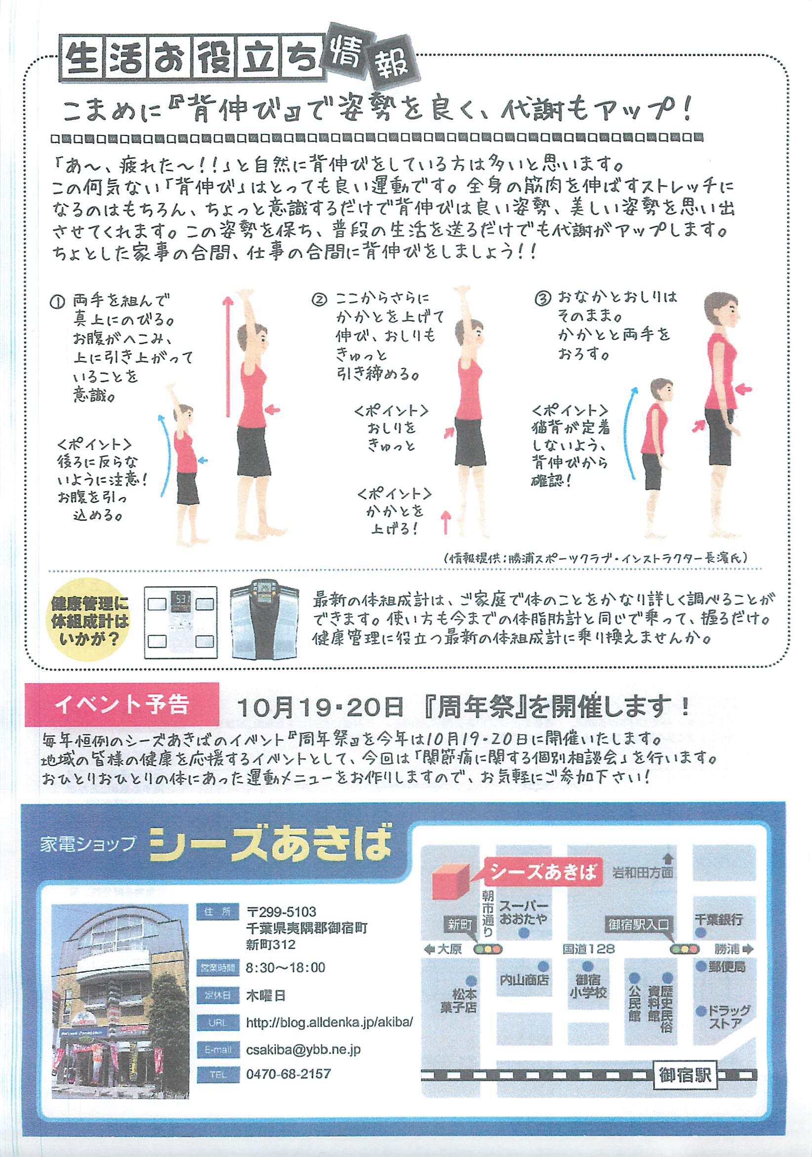 お役立ちマガジン 2013年10月1日シーズあきばでは町の電気屋ですから、もちろん電気の応援もしているのですが