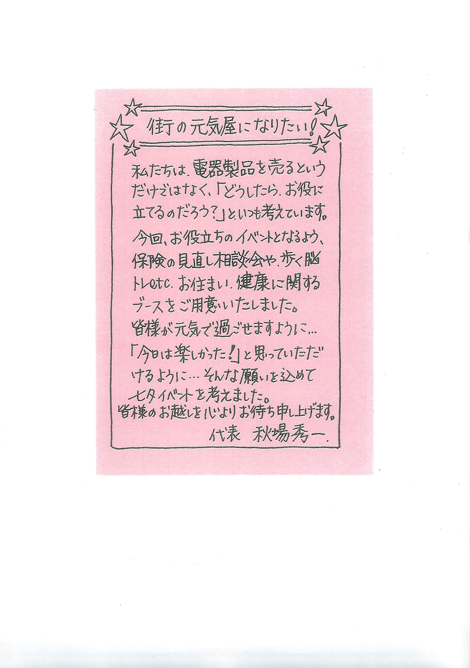 今現在、当店のお客様にはご案内状をお届けしています。