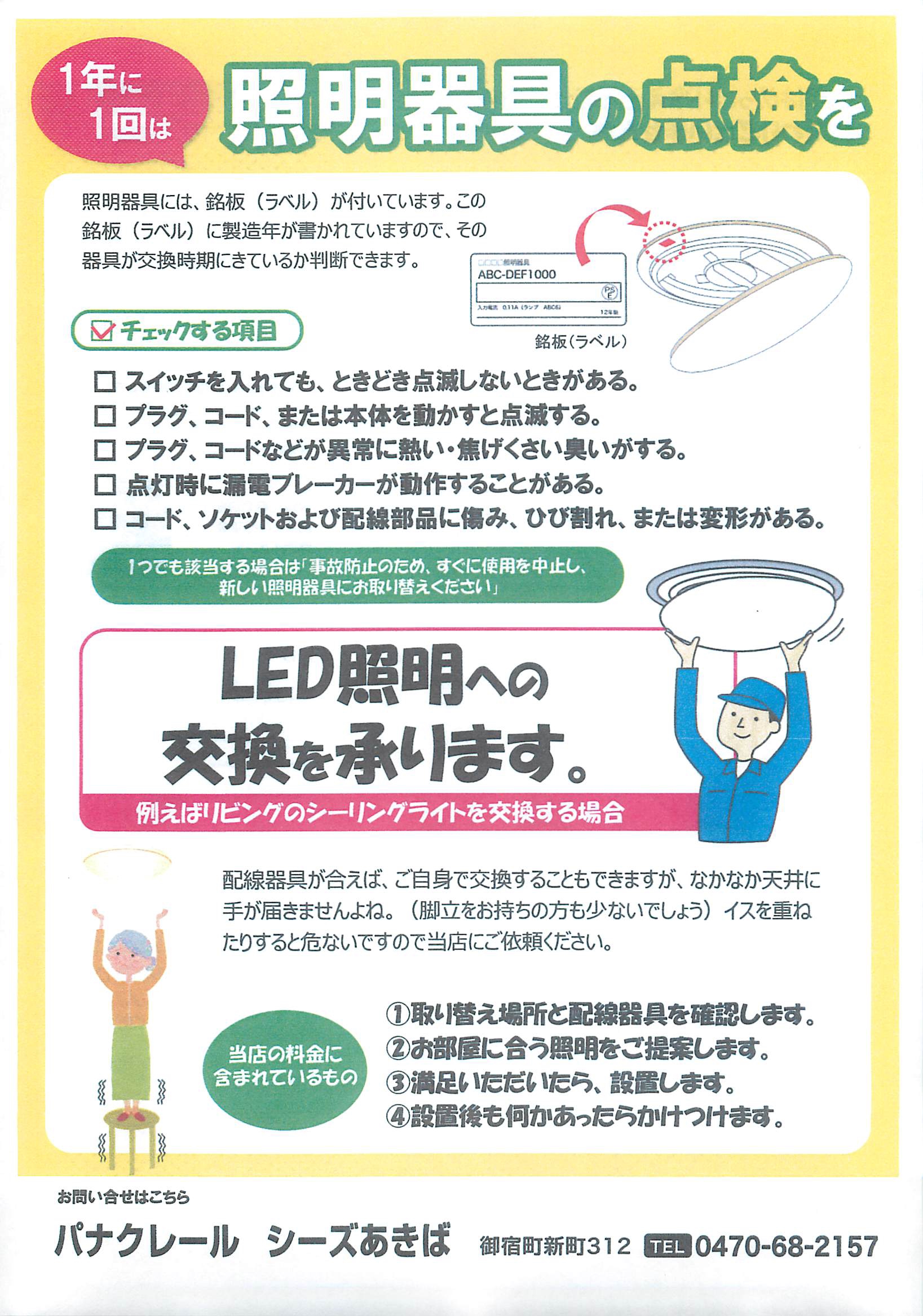 なかなか点検できない毎日使っている照明器具ですが寿命があります。 安心して使い続けるためにも是非点検をしてみてください