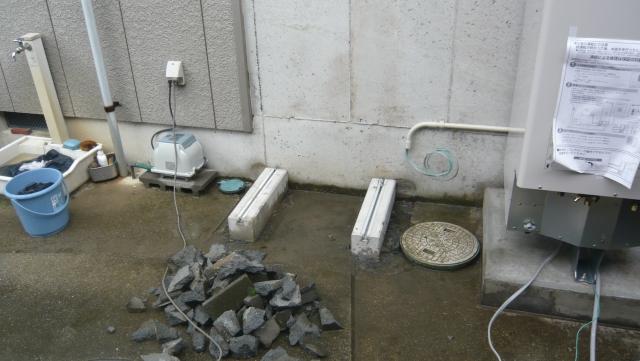 コンクリートベースを設置しました。すぐ近くに排水ますがあったので排水工事がきれいにいきそうです。