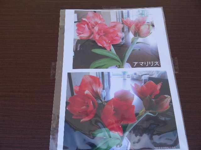 アマリリスの花がこんなに大ききなりましたとわざわざ写真にして持ってきていただきました。
