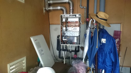 上越市で、FF温風ヒーターの取り換え工事