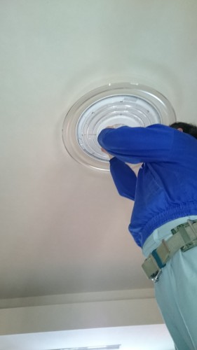 2015年4月8日 お困り解決, 施工事例町内会館の落下し掛ったレンジフードを本日取り付け