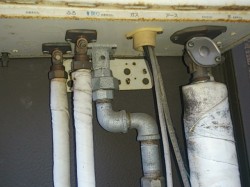 現在の温水器の設置場所が家の中にあるため配管等の工事追加となる。