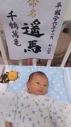7日に誕生の長女夫婦長男の名前は、遥馬くんですが