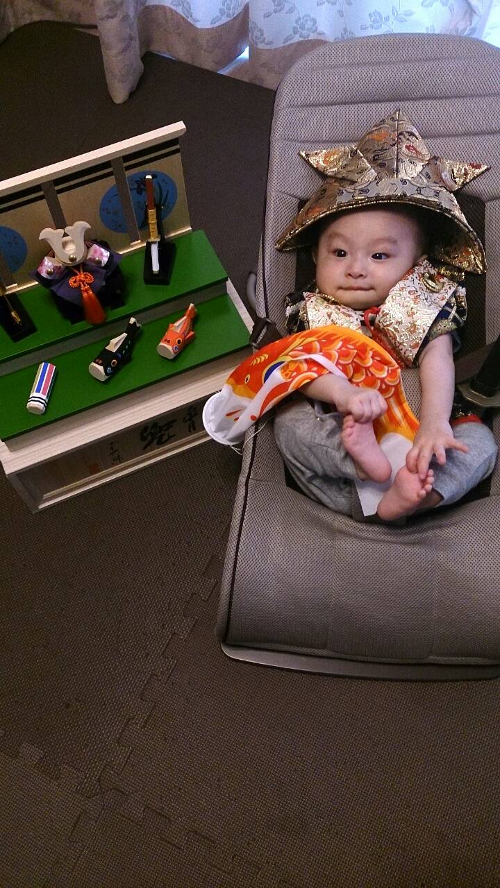 昨年11月に生まれて六か月 じいさんばあさんで人形と陣羽織