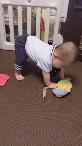 一か月ほど前に見たときは、ようやくハイハイの始まり?