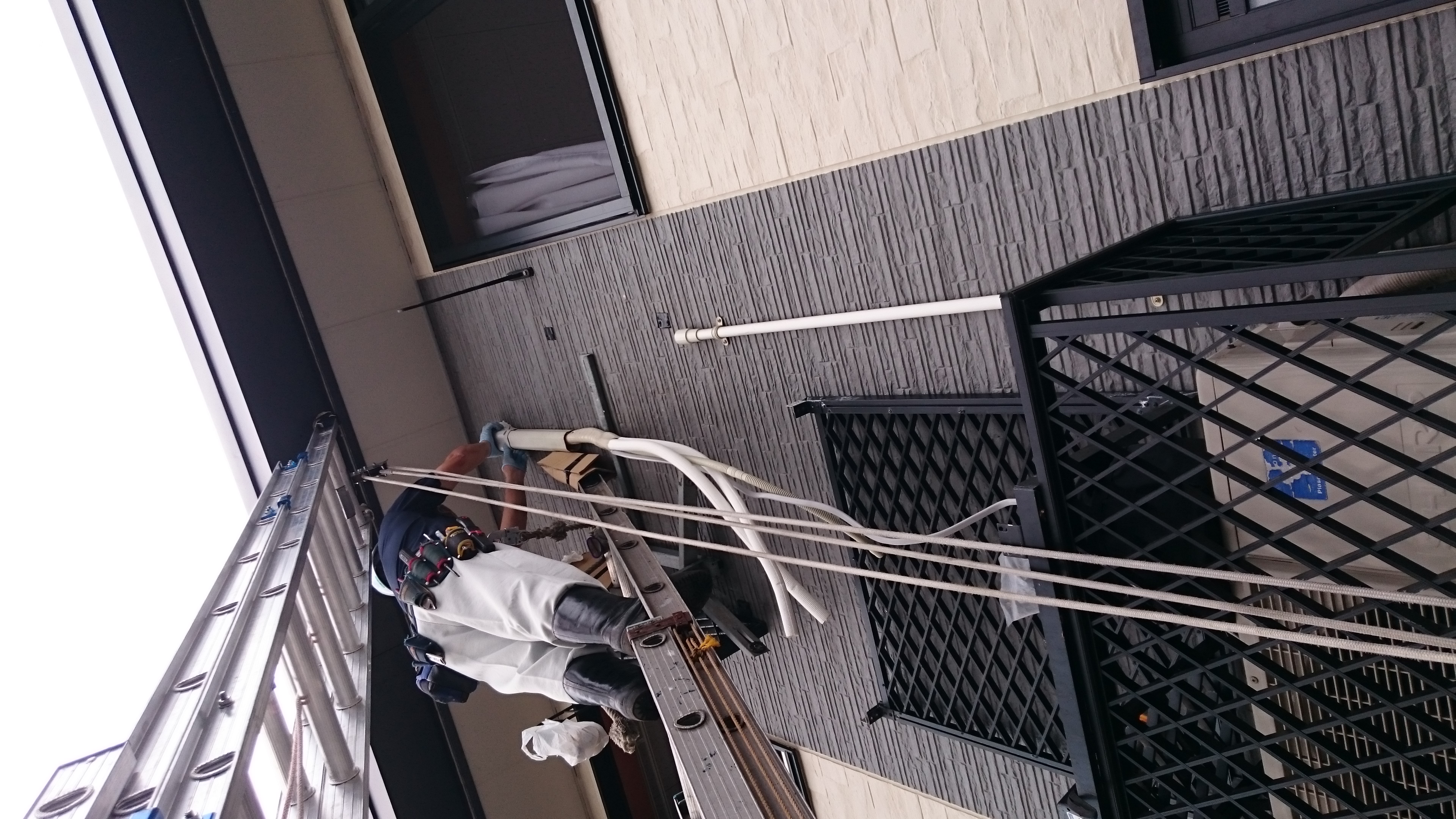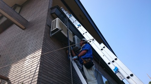 本日、アパートのエアコン交換2台高所作業