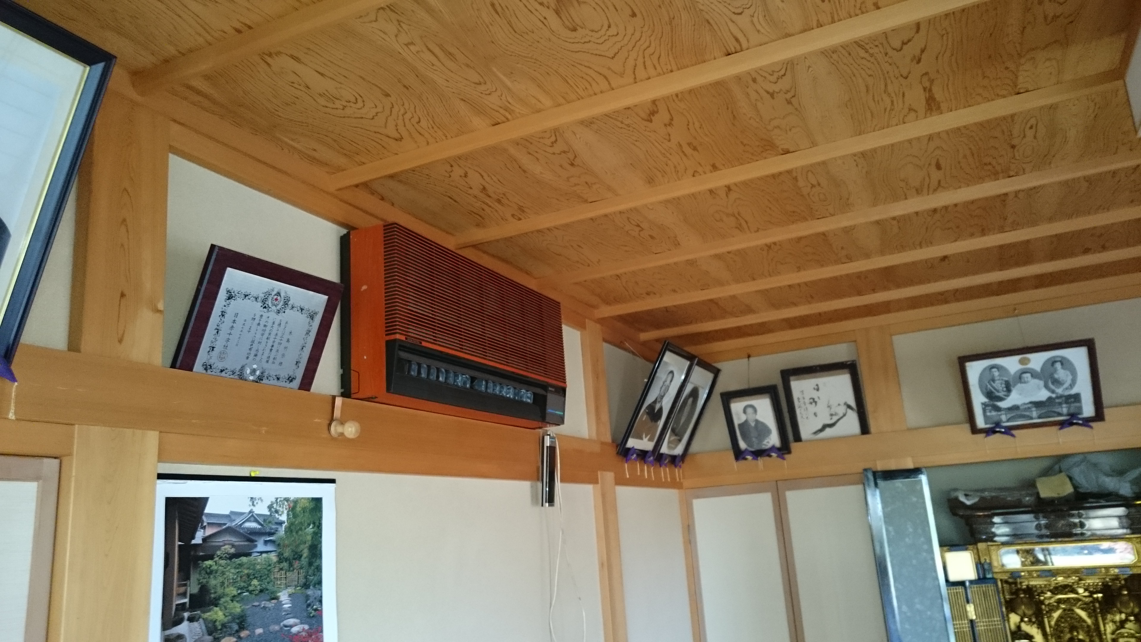 2台目は、配管を納戸を通して室外機は、壁面高所に取り付ける。
