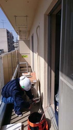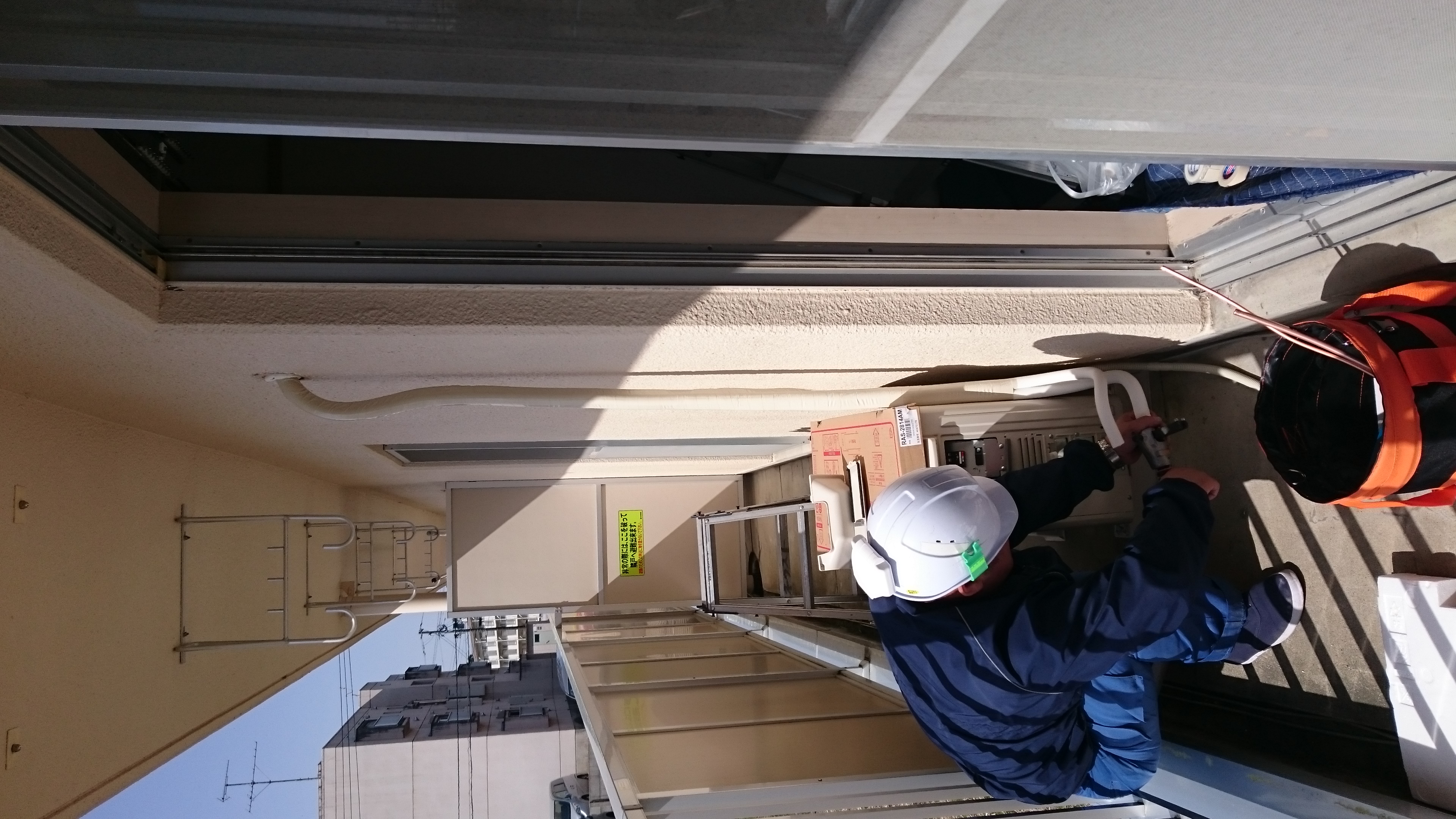 今日は、朝から晴天 午前中に 官舎に引っ越しのお客様宅の 新設で、エアコン取り付け作業を行う。