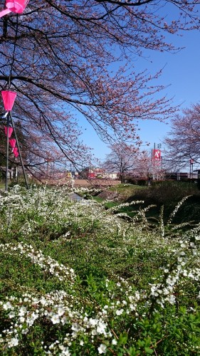 写真は、当店近くの青田川沿いのさくらとユキヤナギ