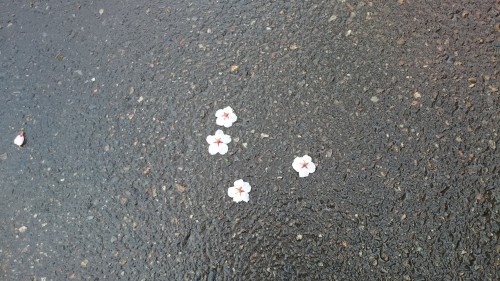道路を見たら桜の花びらが