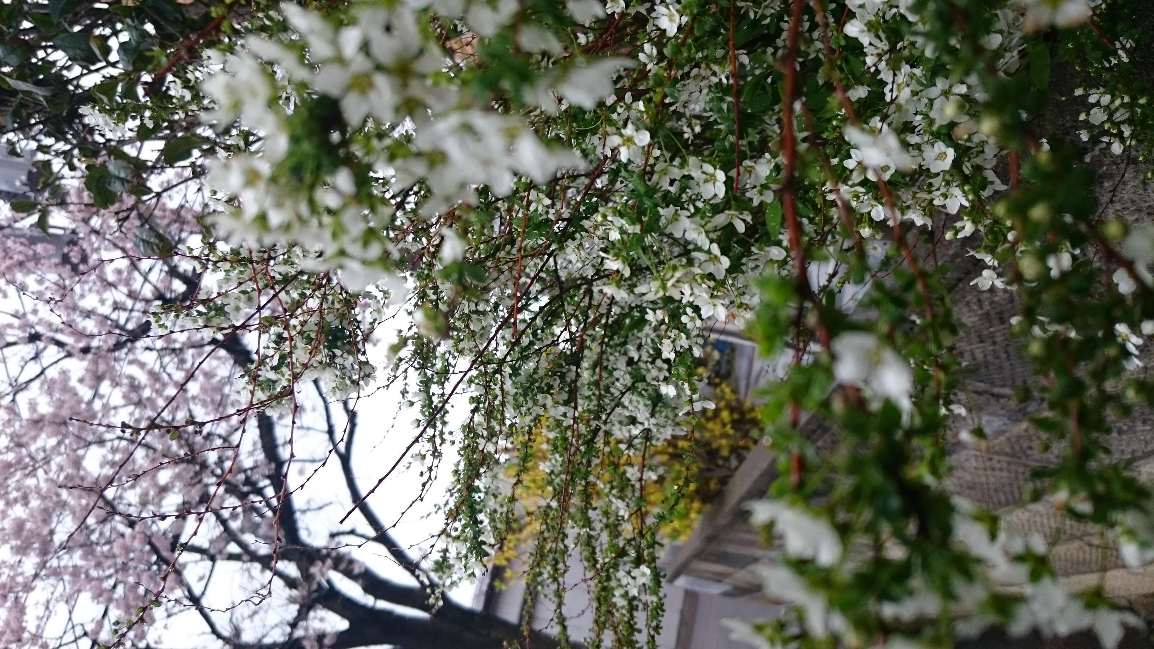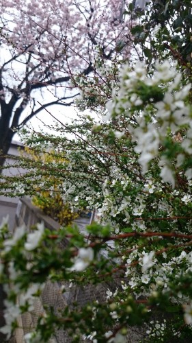 ようやく咲き始めた桜、今日の天気は雨風のあいにくの天気
