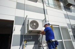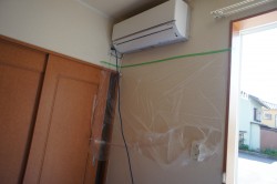 今日は、アパートでのエアコン取り換え工事です。室内壁には、