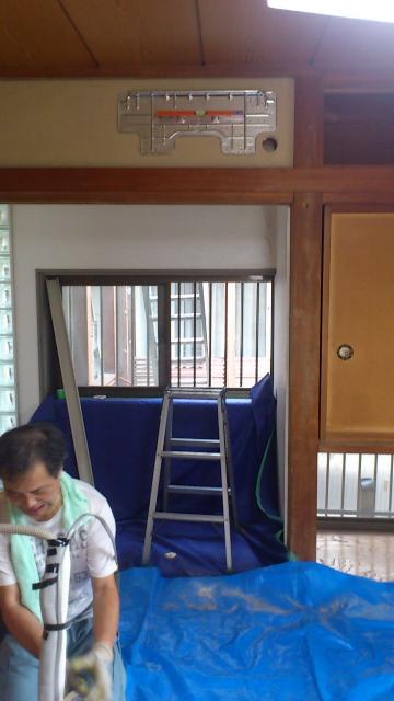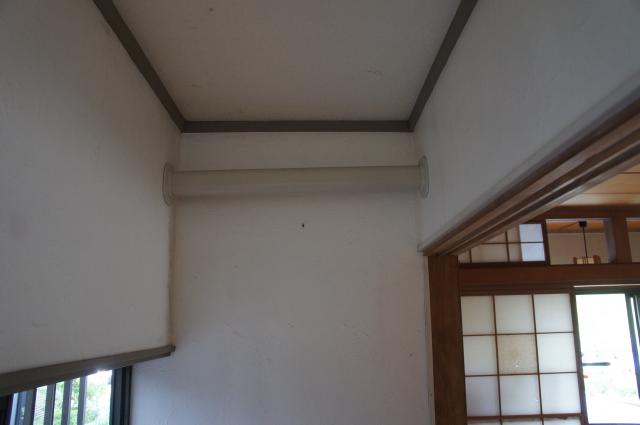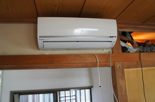 今回は、廊下を隔てた和室に取り付けの為配管処理及び電源等かなりの難工事でした。 部屋の、畳等傷つけないように養生は、きっちりと 電源は、天井裏より 廊下から外への配管も、カバーできれいに