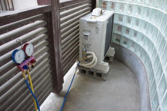 外の配管処理もカバー処理 室外機は、バルコニースペースに設置