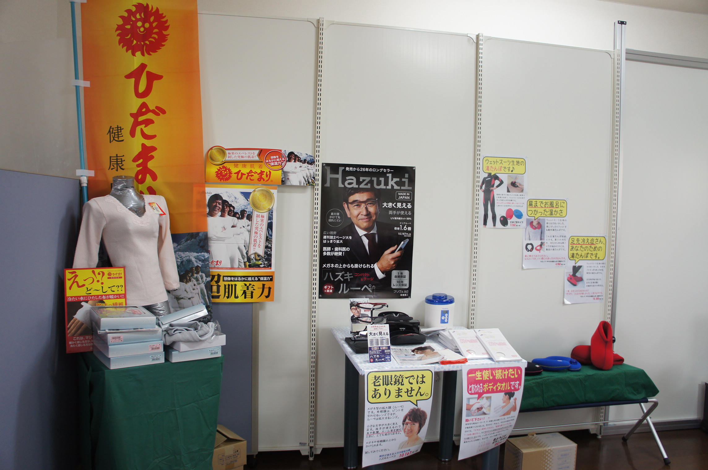店頭に一部展示させて頂きました。厳選した商品を実際にご満足頂くまで体感して頂こうというのが