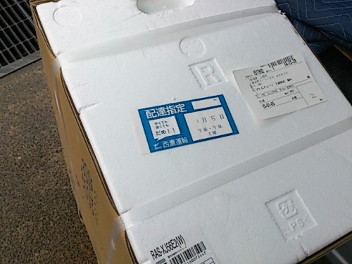 省エネエアコン工事 2014年12月29日一月五日の、配達指定となっていた。FAX頂いた送り状をチェツクしてよかった。