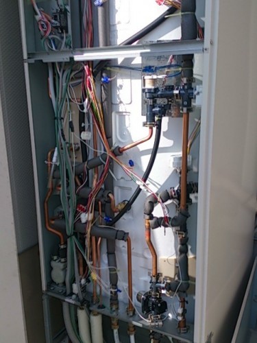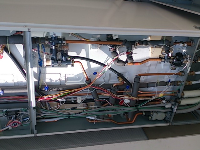 リモコンにはエラー表示も出ないので配管の凍結と考えタンクのパネルを