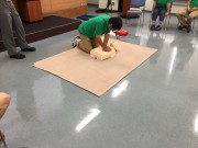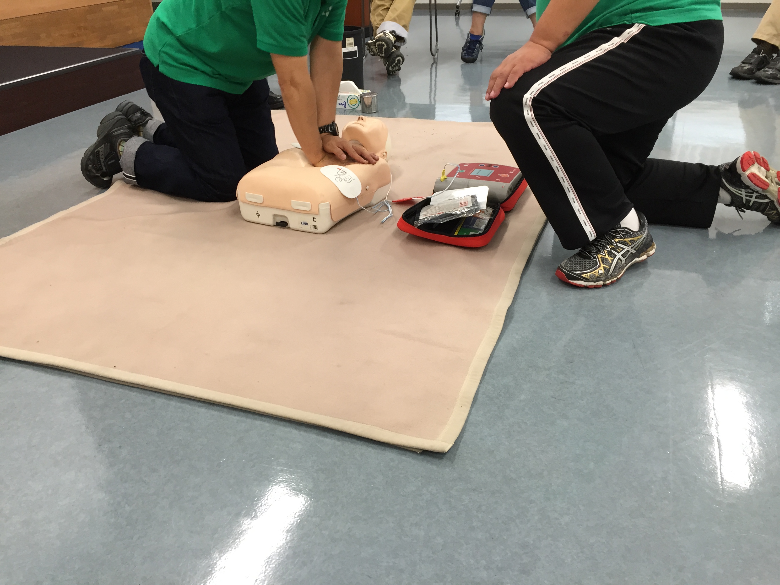 後半は実技です。人形を使い、胸骨圧迫、人工呼吸を学びました。