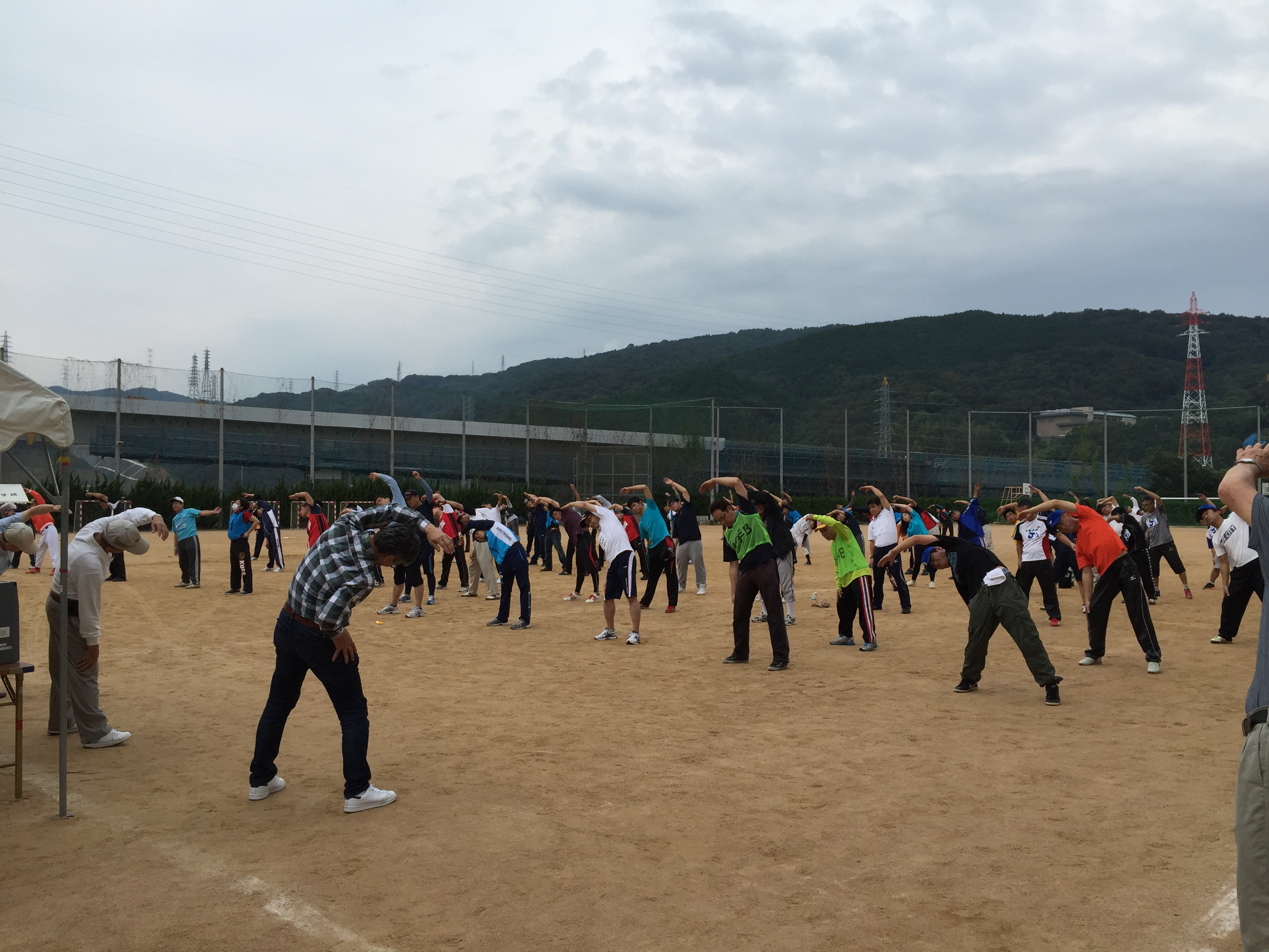 審判長注意事項伝達のあと、準備体操をして試合が始まりました。