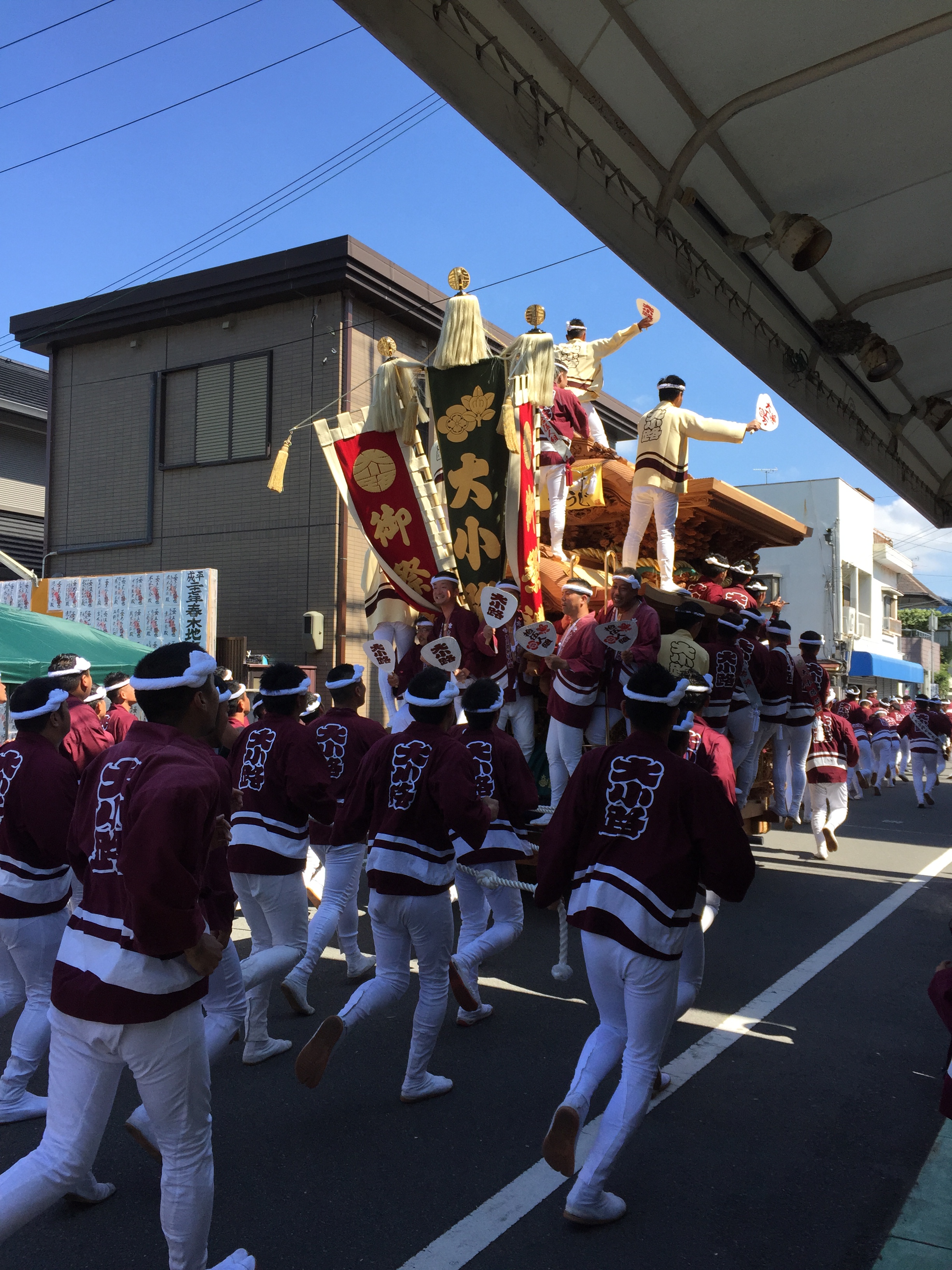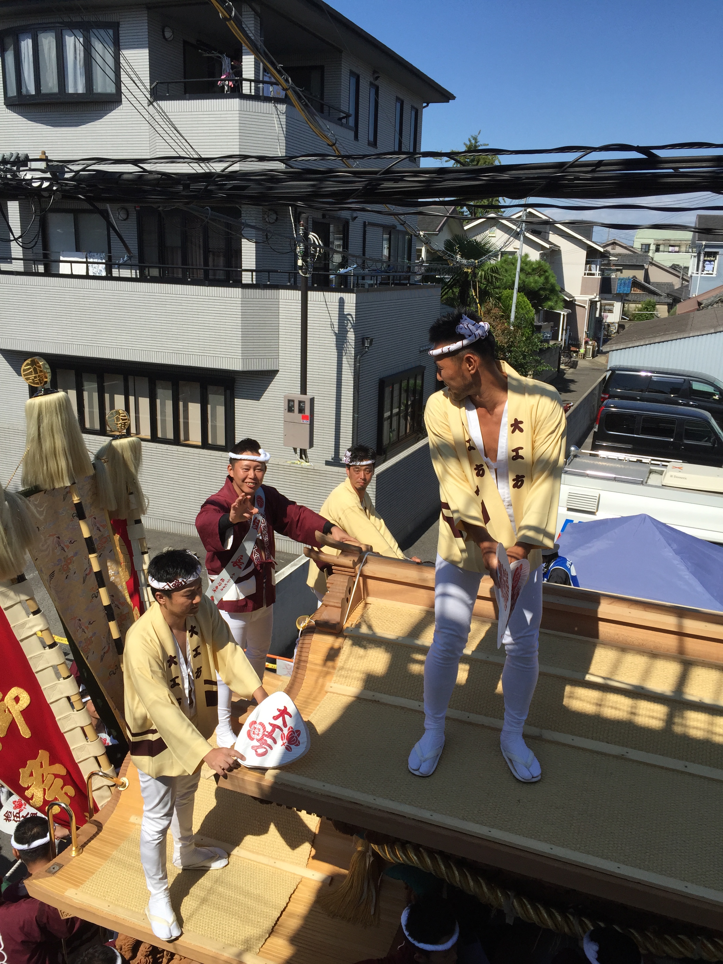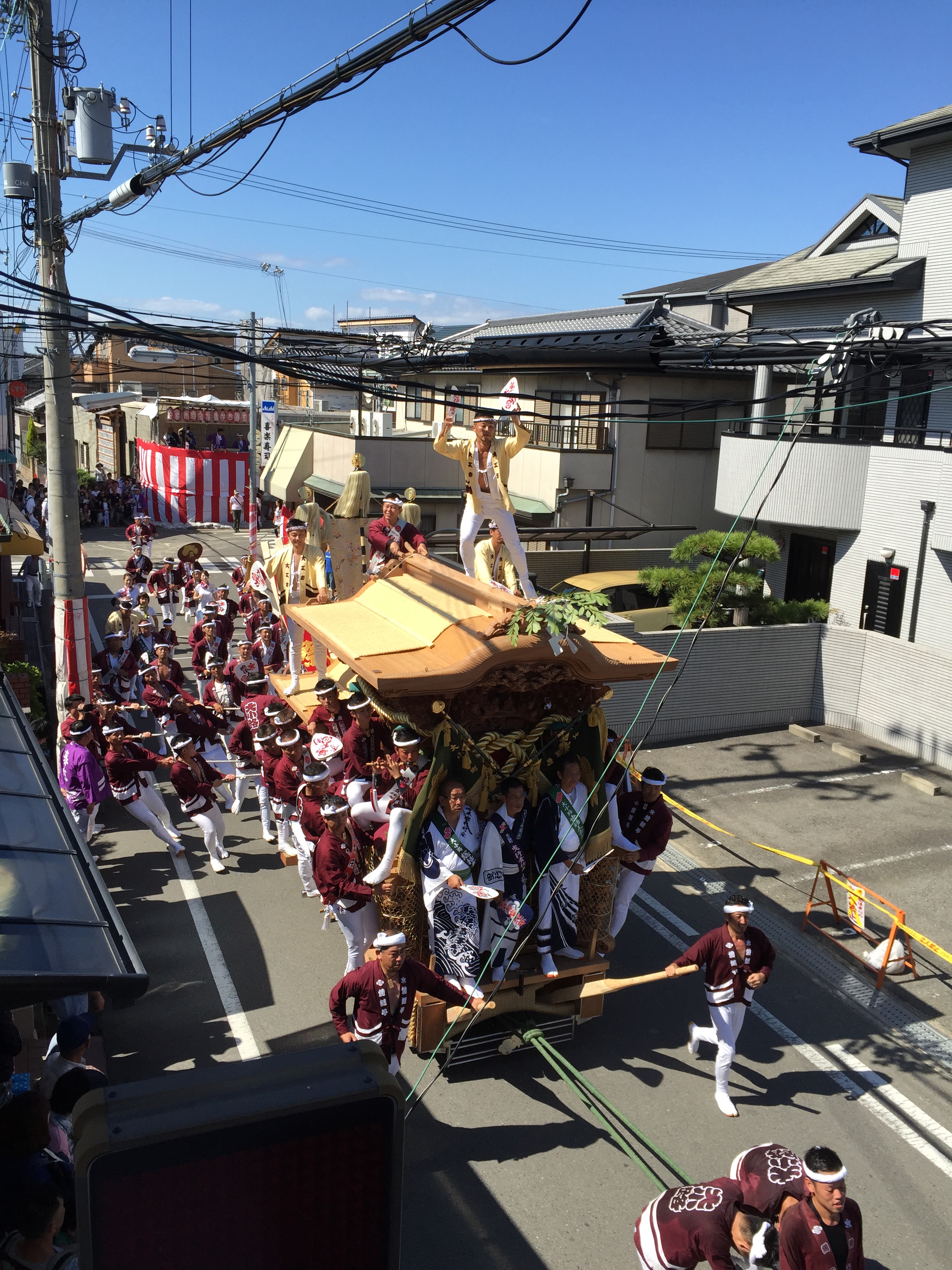 だんじりの後ろに乗ってると