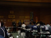 ブルーシートを敷いて、向かい合って