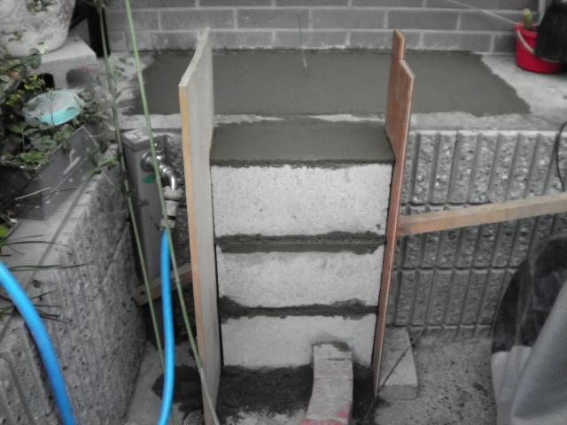 ブロックを三段積みセメントで