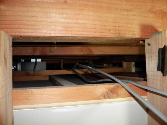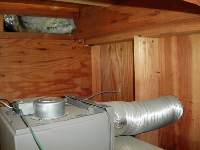1階の点検口から梁したの空間を配線、また、浴室乾燥機を