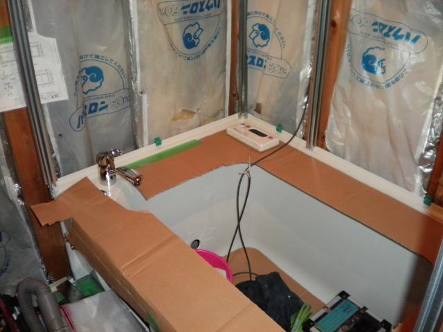 浴槽も設置され、ユニットの骨組みも終了!