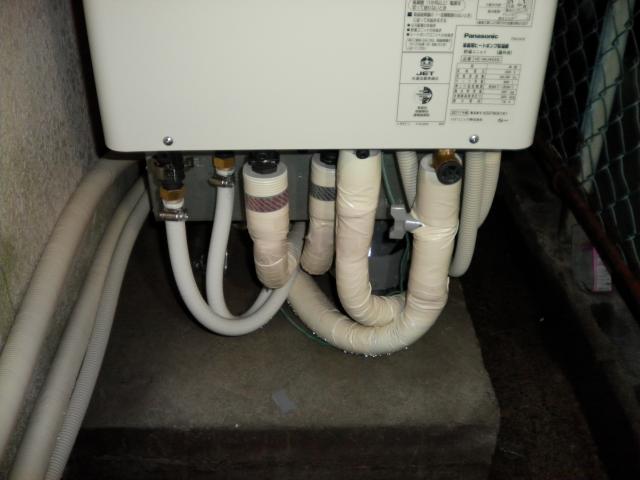 タンク設置後、風呂配管、給湯、給水、ヒートポンプと