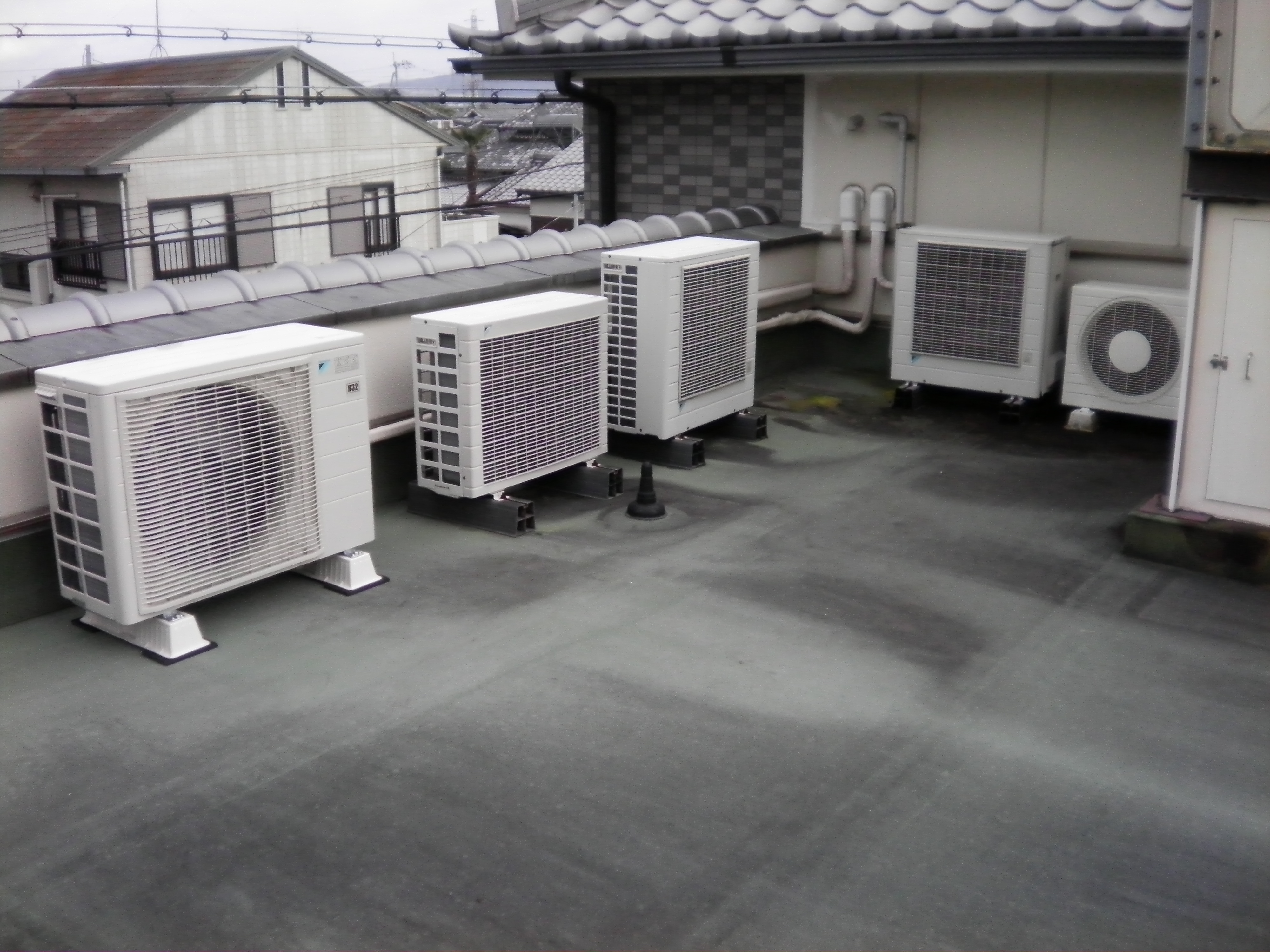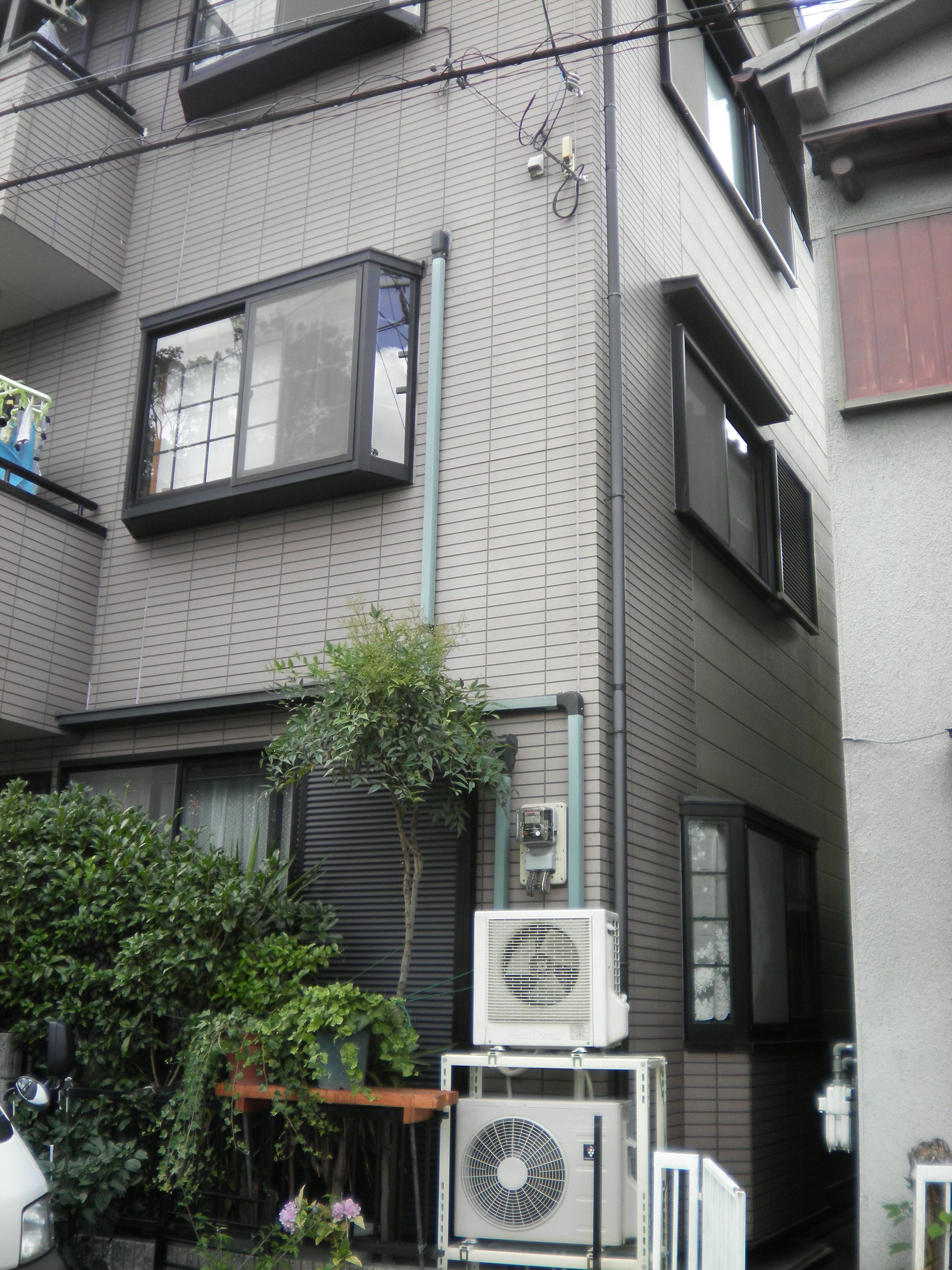 外部は配管化粧化カバーで仕上げました。試運転をして、2階は完了です。