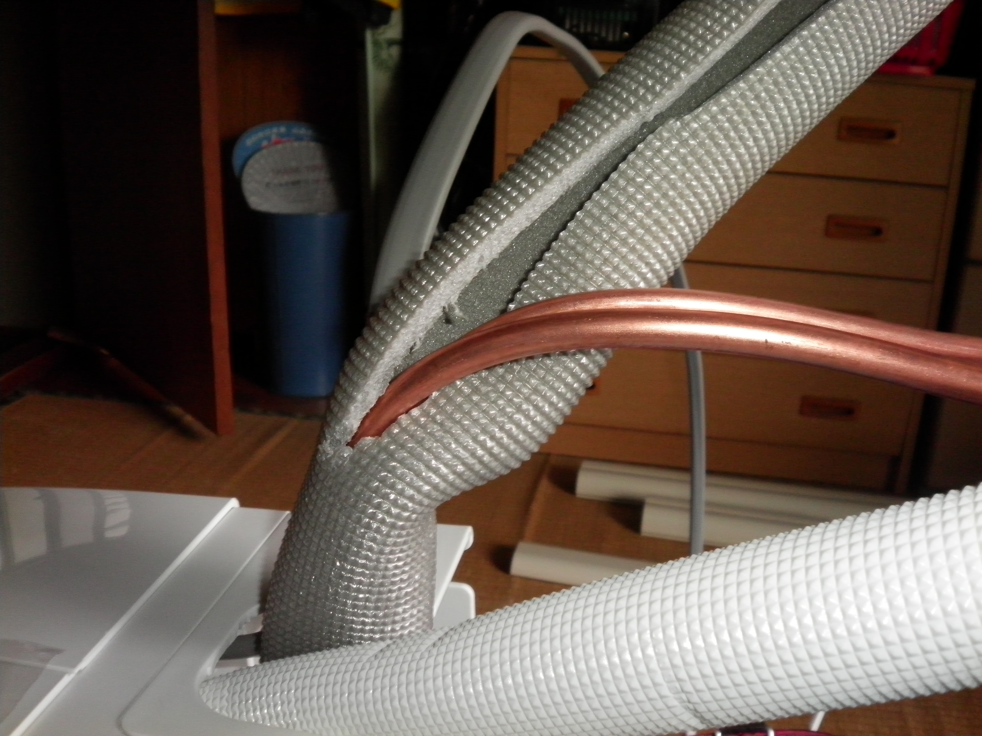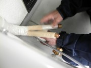 エアコン本体のパイプを曲げます。銅管を確認しながら折れないように