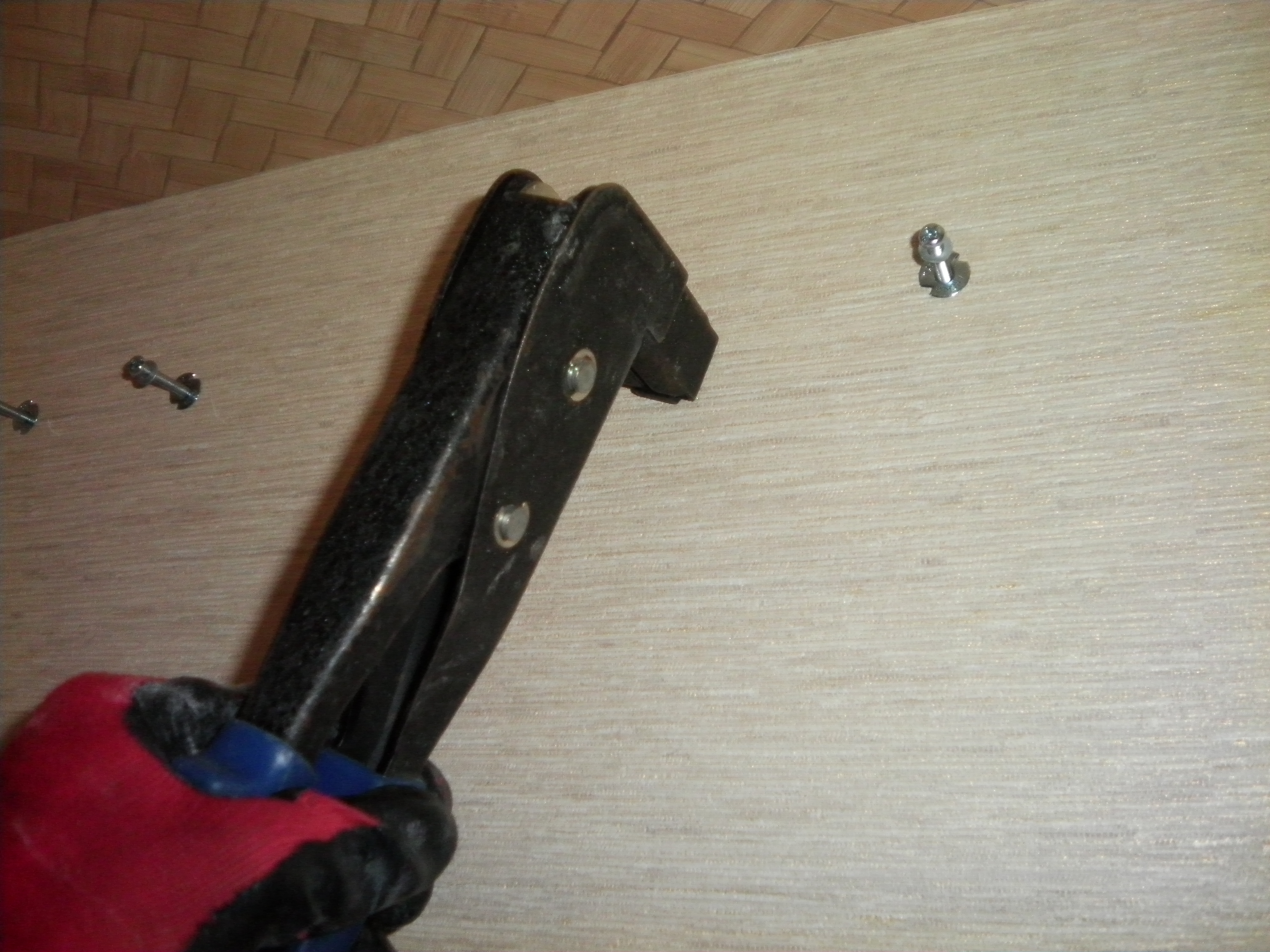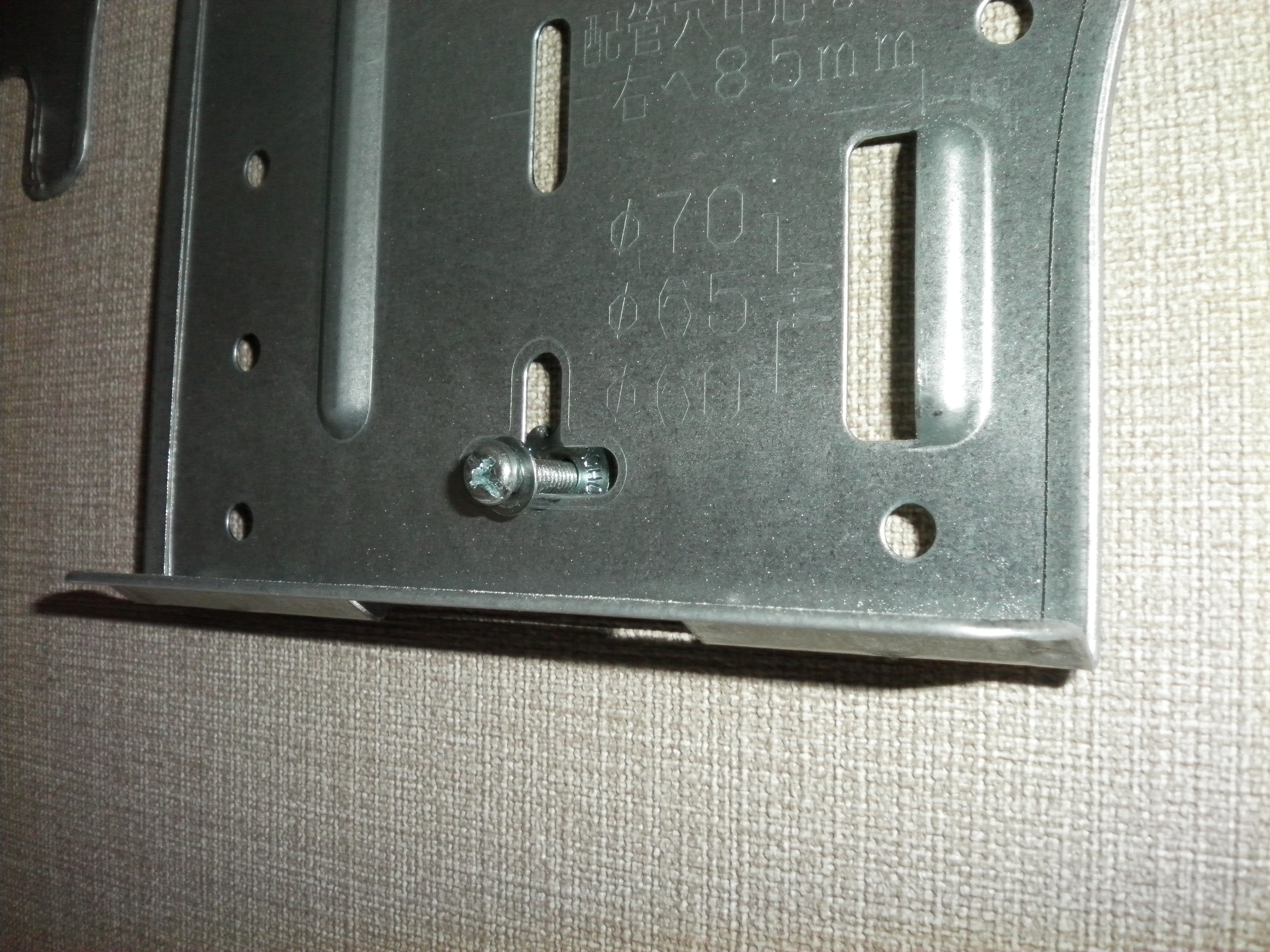 ボードアンカーを用いてしっかりと背板を固定しました。配管穴には