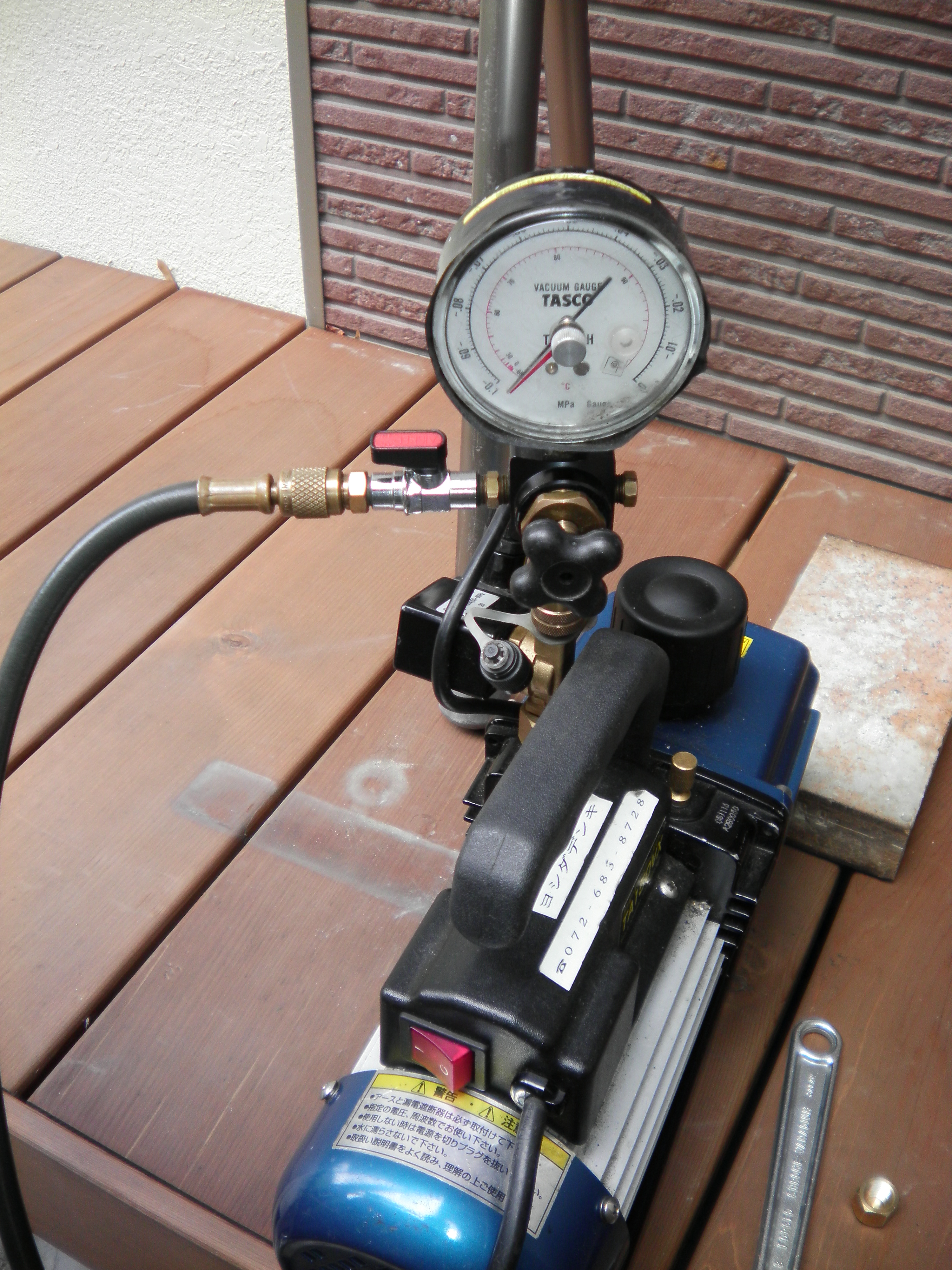 します。真空計を用いて漏れがないかを確認します。