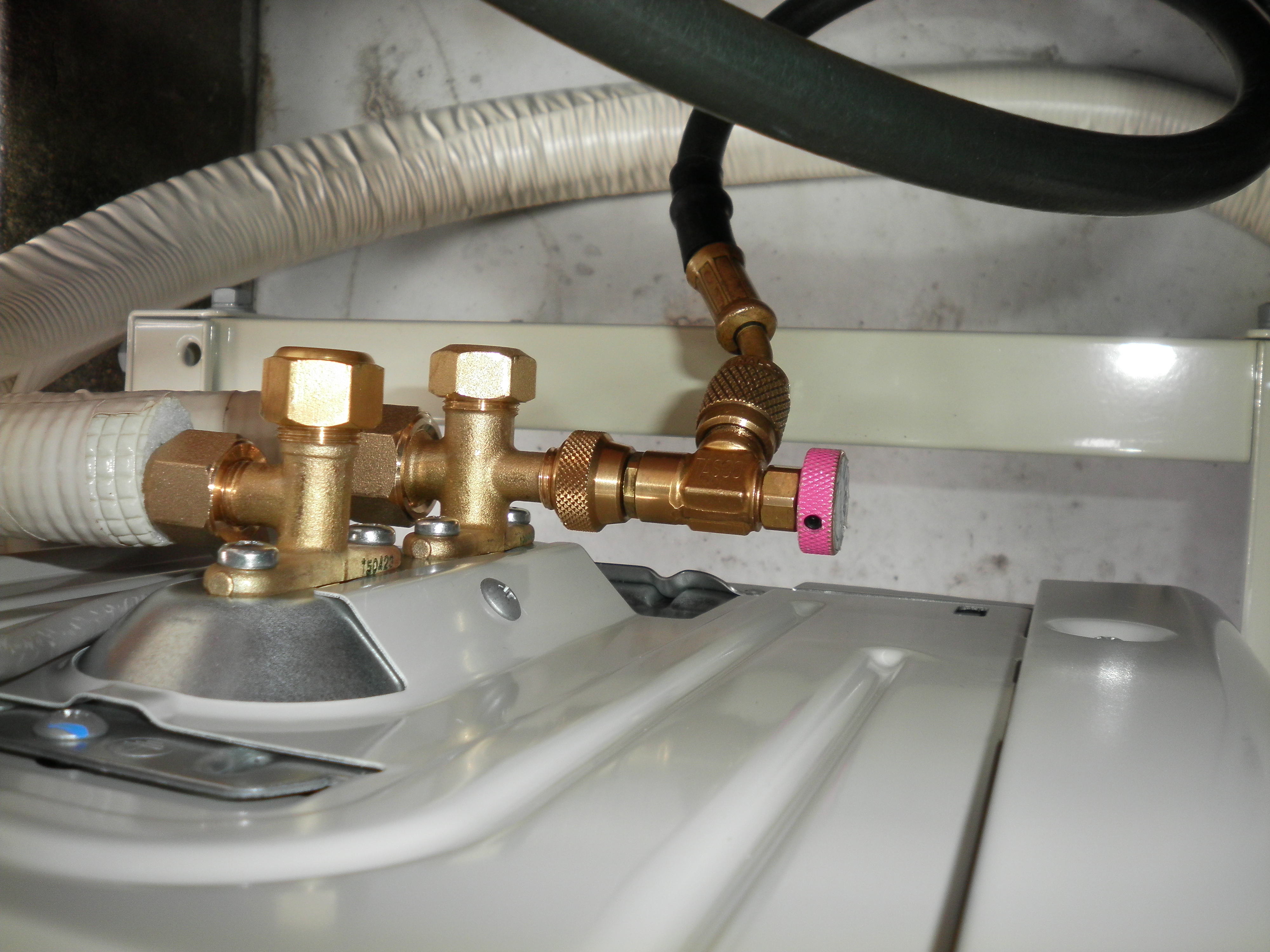 プラロックも取り付けます。真空ポンプを用いて、配管内を真空状態に