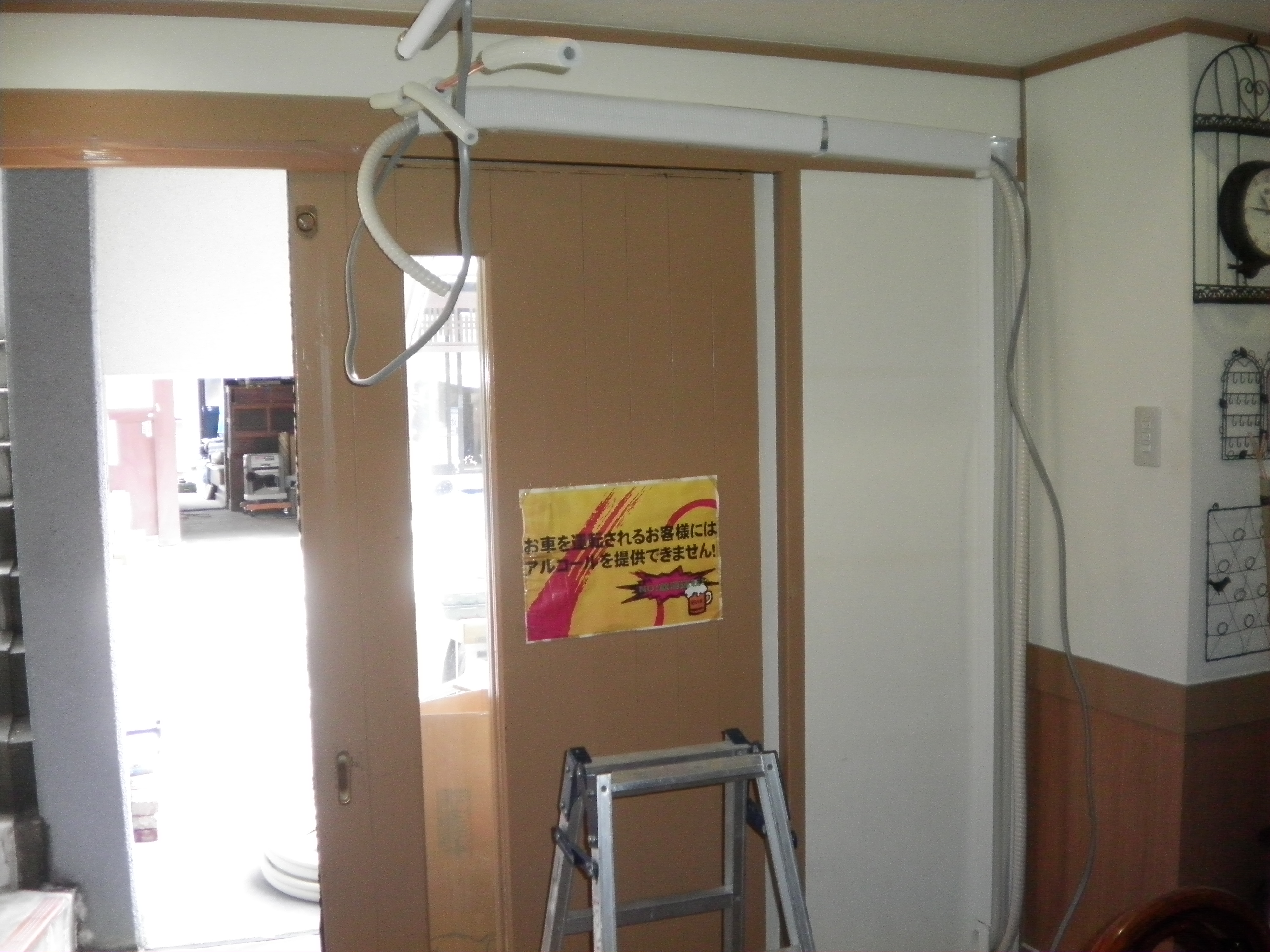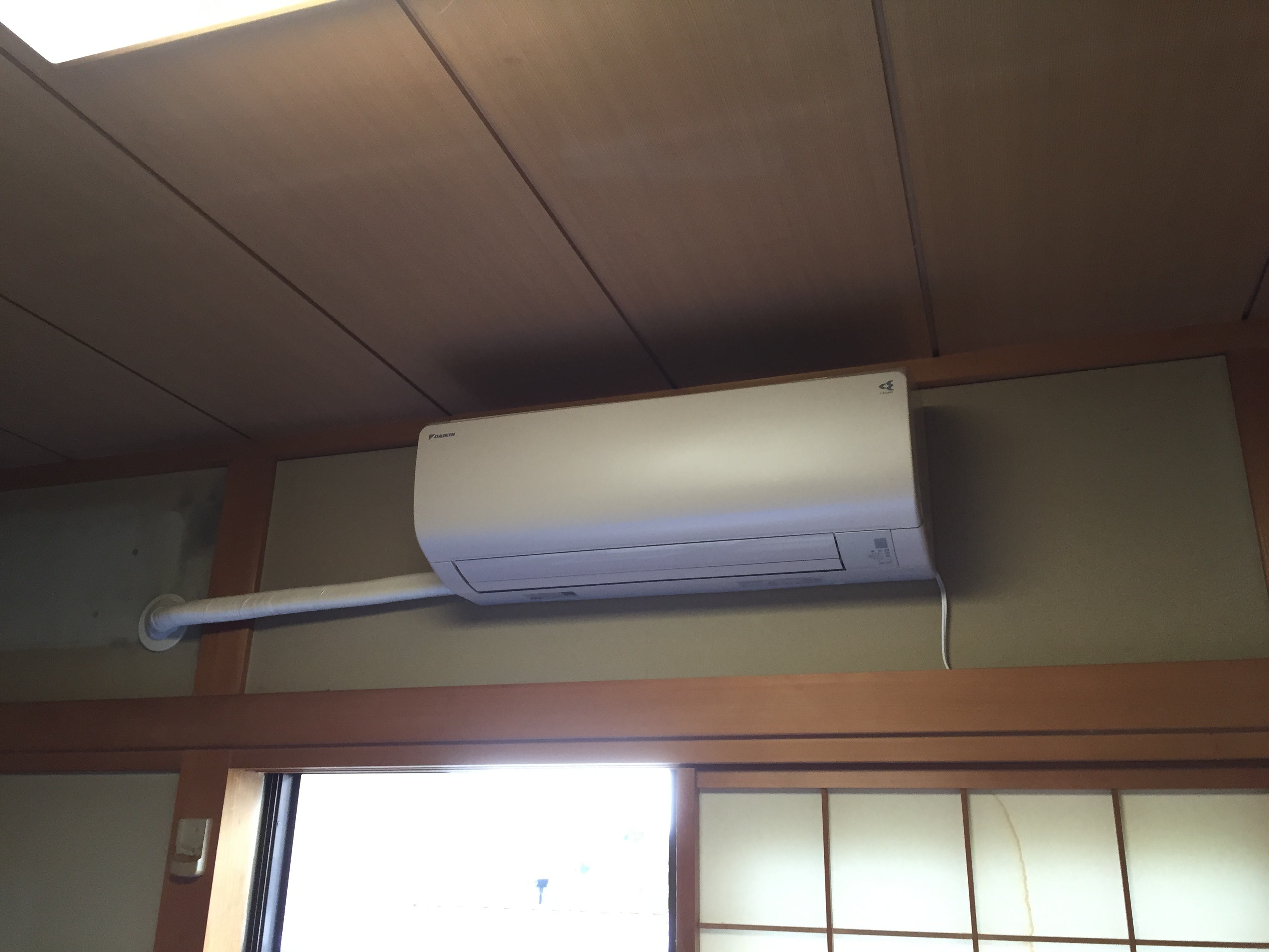 エアコン本体を上の位置に上げることをご提案させて頂き、施工