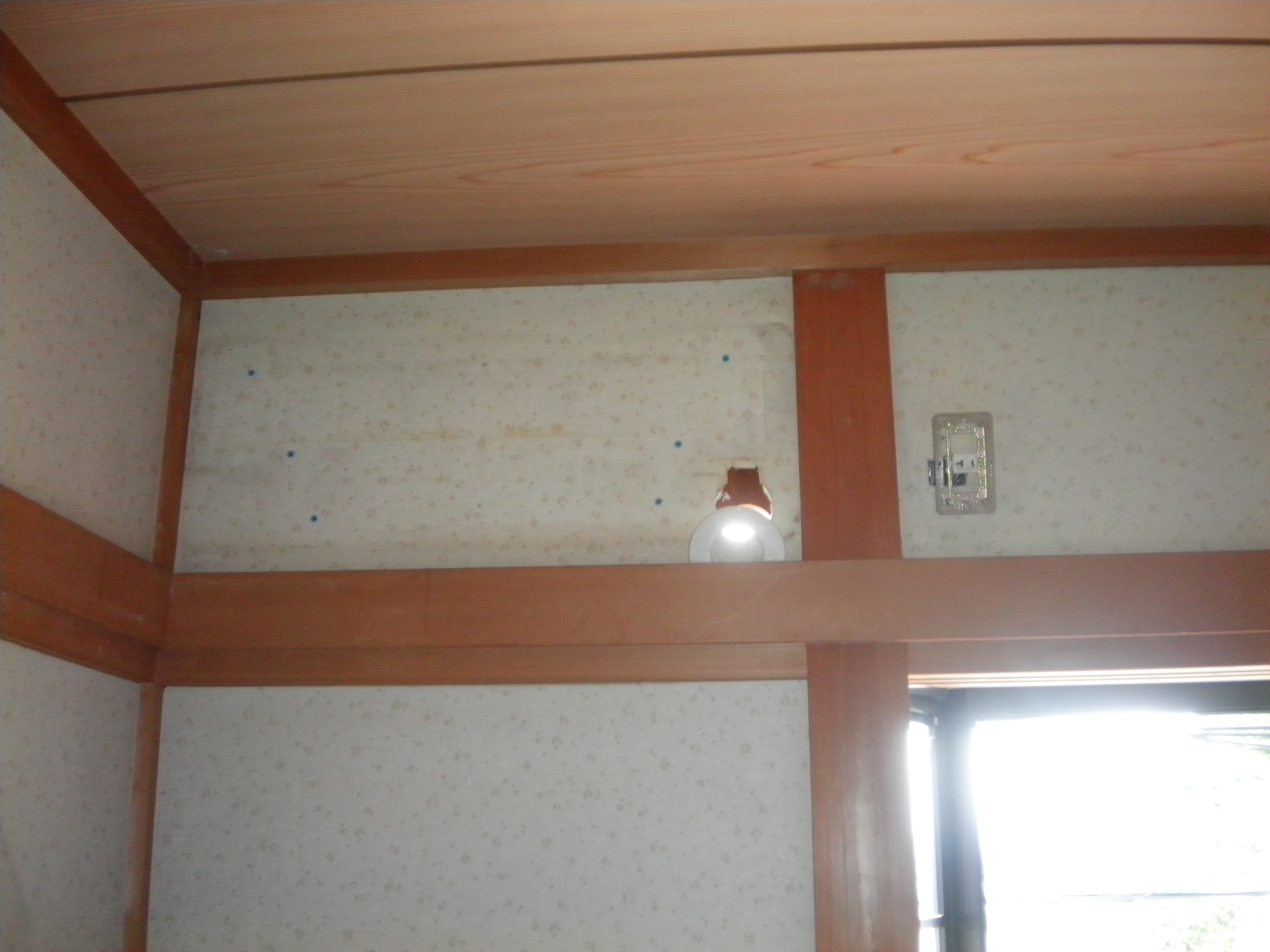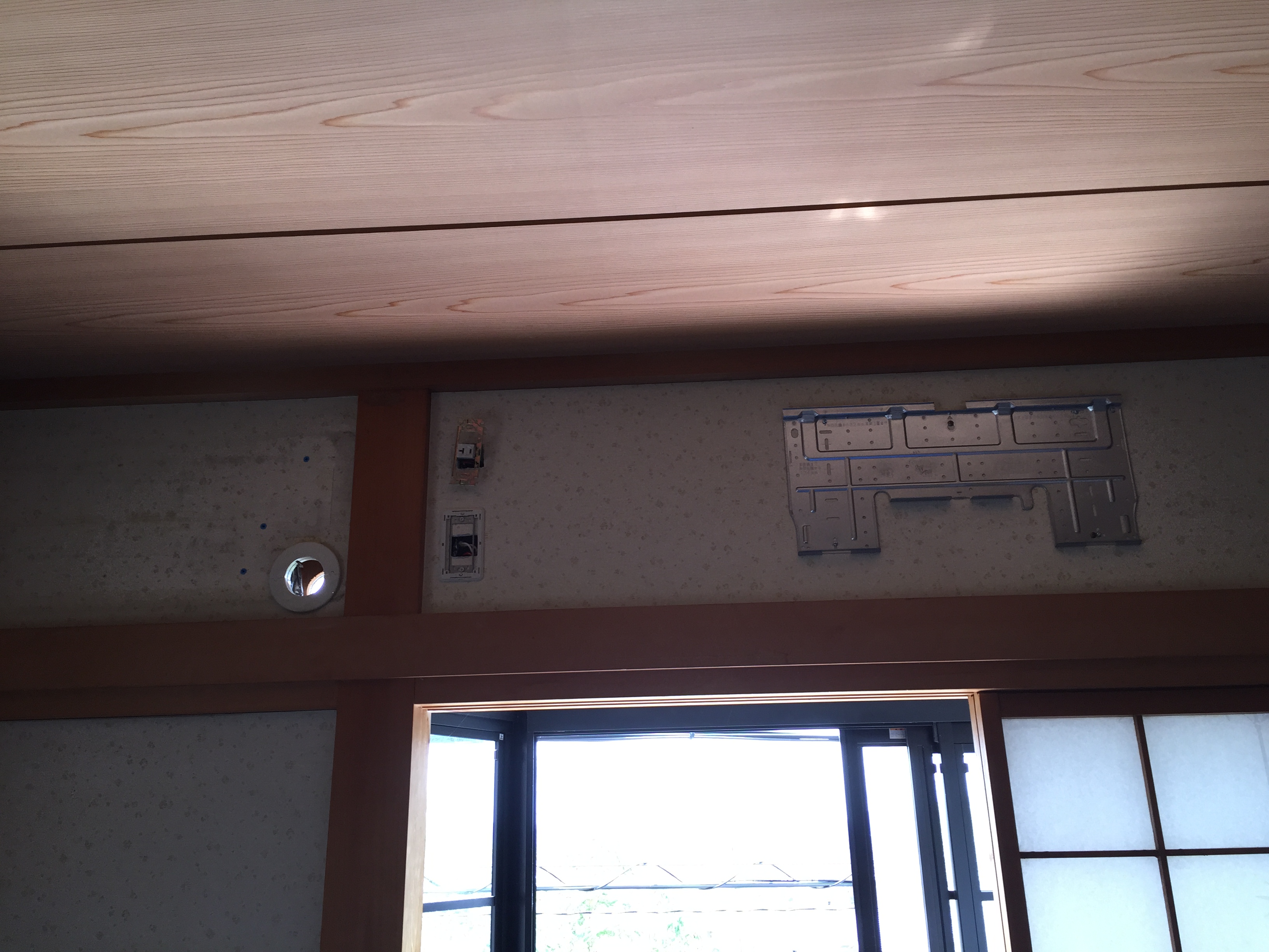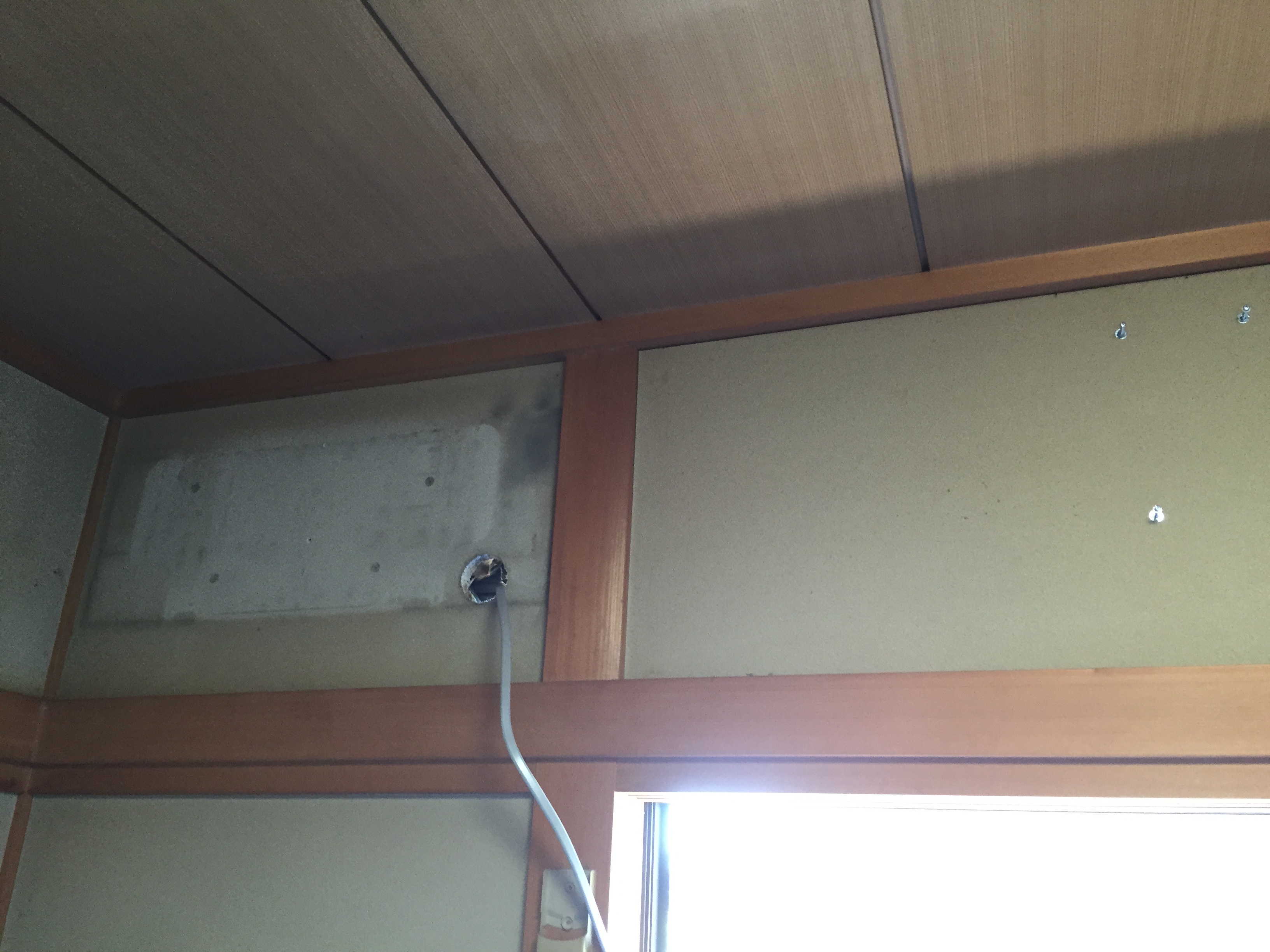 2階の部屋は以前の配管穴があいていましたが、その穴に合すと