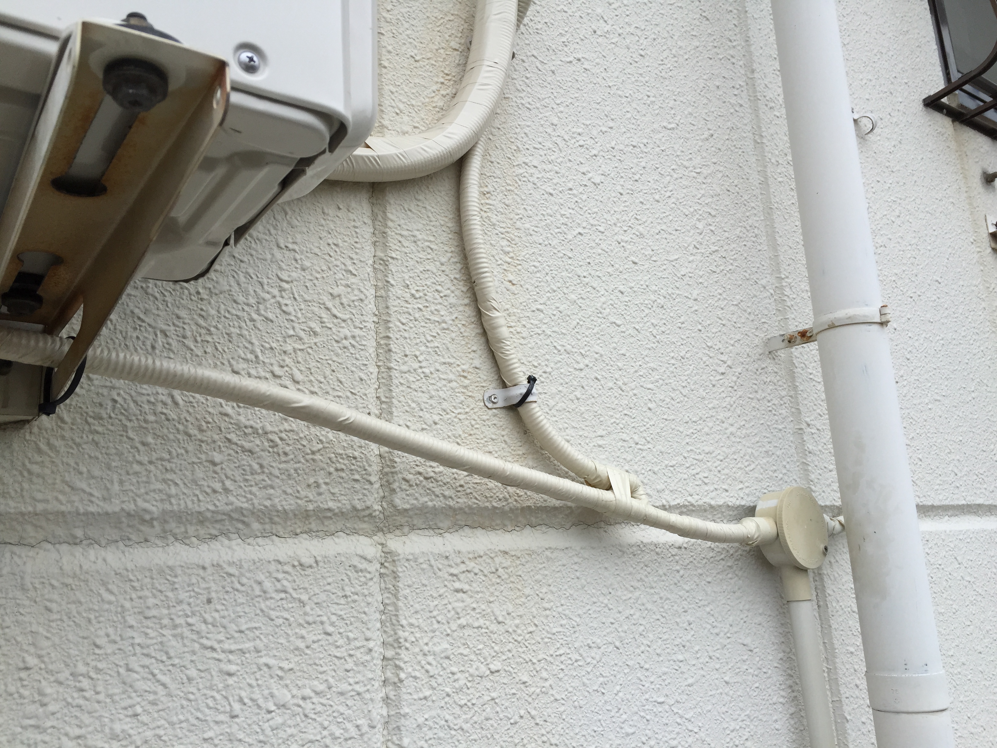 室外機の設置場所と排水溝とが反対の位置にありましたので、