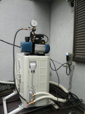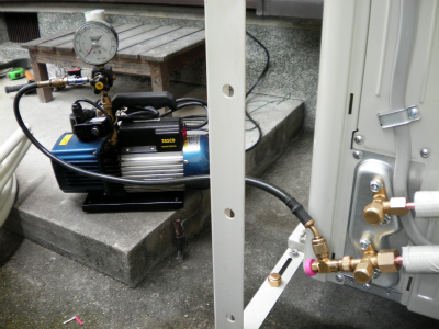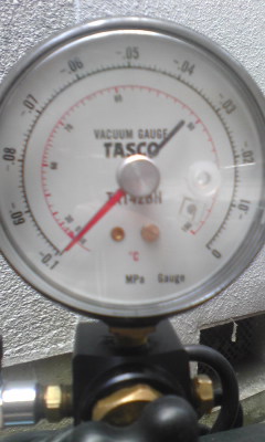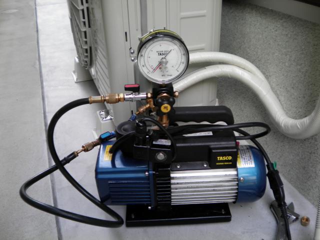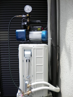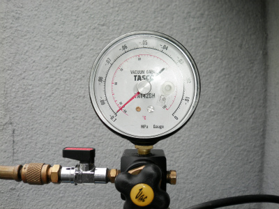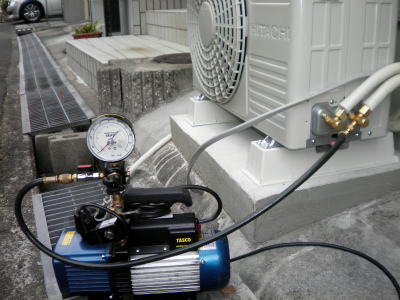 真空ポンプを使用し、配管内の空気を抜くと同時に