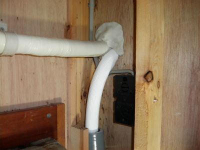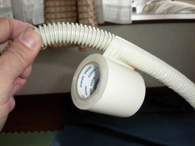 当店のこだわりです。ドレンホースにも粘着テープを巻き