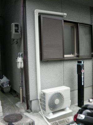2012年7月12日 エアコン工事について今回はエアコン室外機の設置場所が傾斜がきつかったので、