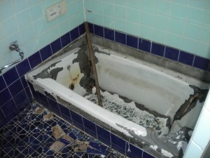 浴槽を撤去します。ステンレスやホーロ素材の物は周りを解体してから