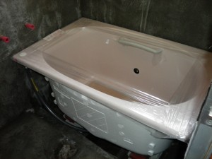 浴槽を撤去しますが、鋳物のお風呂はまずしっかり座っている時に