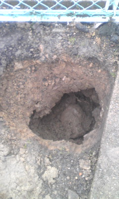 どうにか埋設の深さまで掘りました。