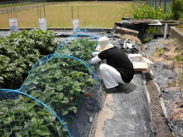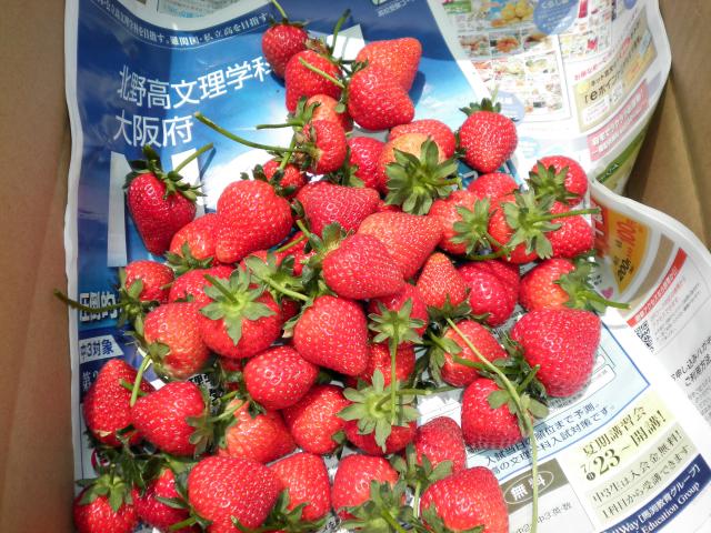 先日の休みに父親が畑で育てているイチゴの 収穫に行って来ました。