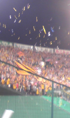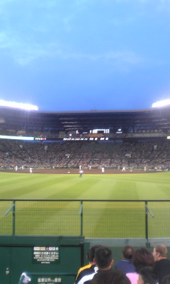 私は仕事を早めに済ませ妻と一緒に甲子園に向かい ました。久しぶりの甲子園!熱狂的な応援をする人が たくさんいました。