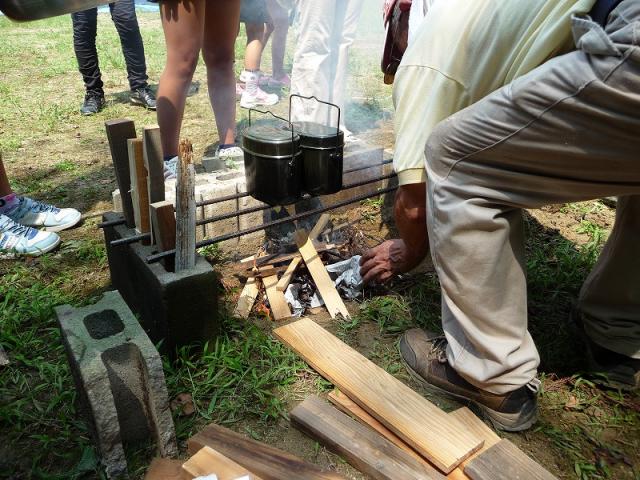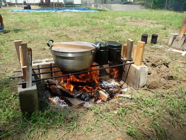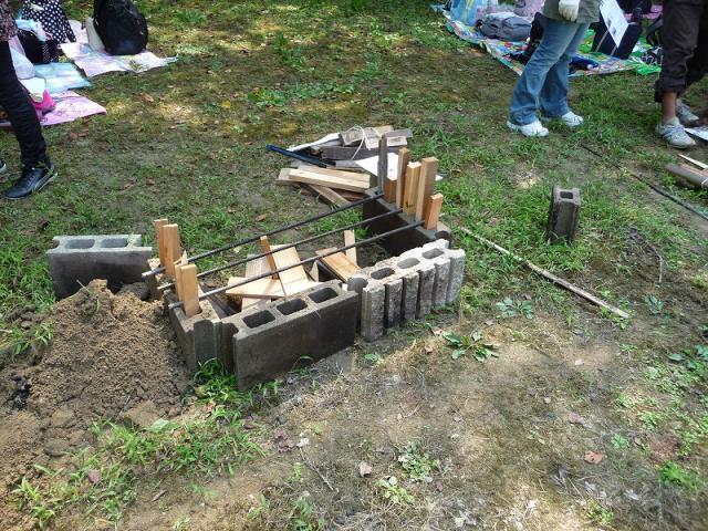 総勢100名弱で現地に到着し、ブロックでかまどを作って