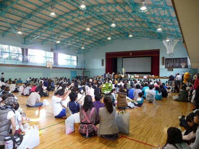 雨のため体育館で閉会式、その後恒例の抽選会です。